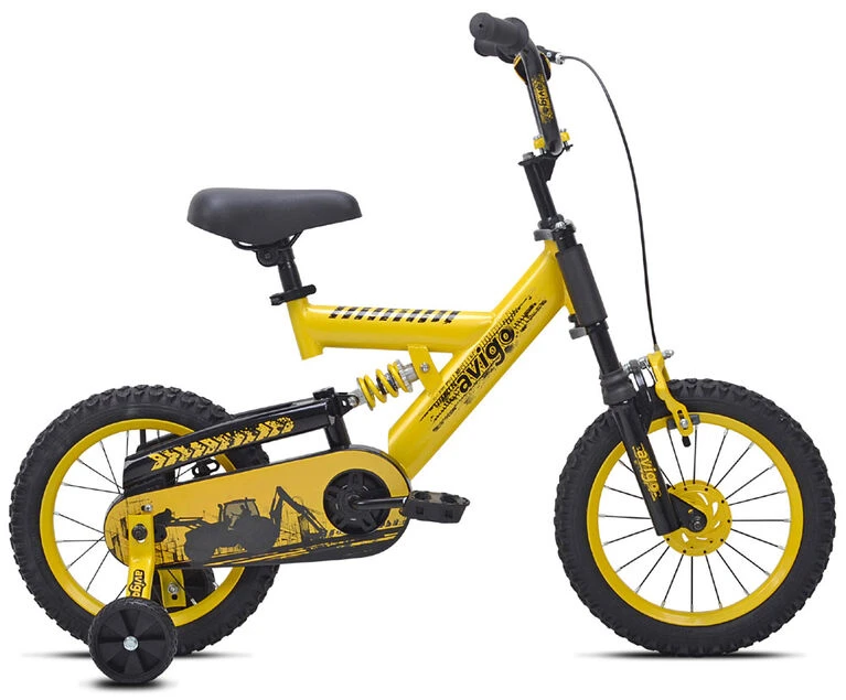 This 14″ Avigo Constuction bike has a dual suspension frame smothing out bumpy terrine. This bike also has a rear coaster brake and a front Alloy hand brake. This bike can be adjusted by the seat and front handlebars to fit the rider most comfortable position. It has rugged tires to handle off road paths and included are removable training wheels. This bike is perfect for the adventure rider!