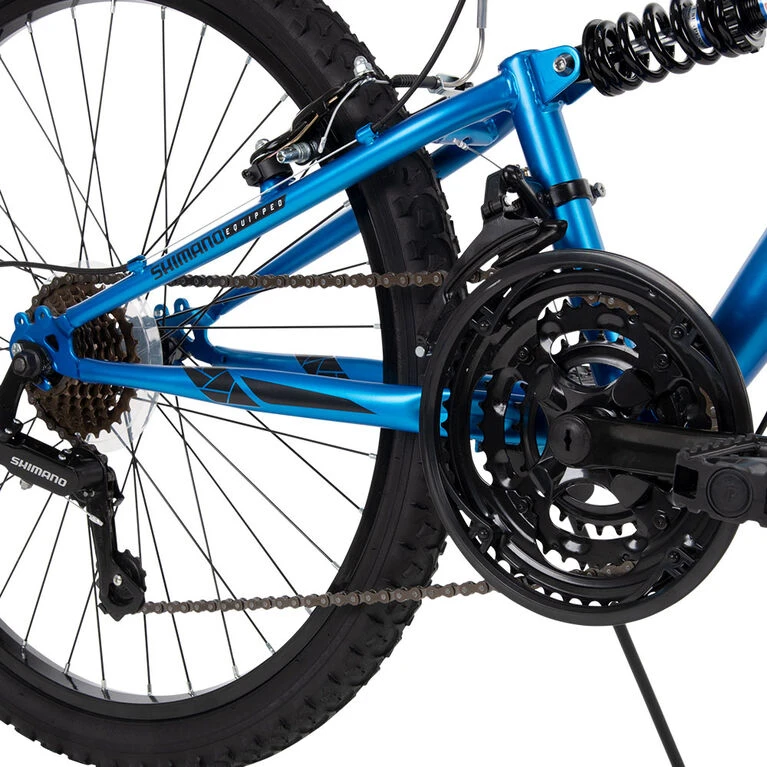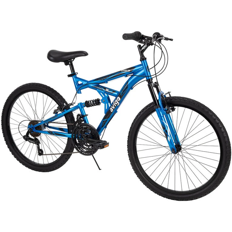 R Exclusive, only available at Toys R Us Canada. Explore the outside wild with the Avigo Ultrax 24-inch Mountain Bike, matte blue with black accents. This dual suspension, steel frame is ready for a variety of wheeled adventures.
