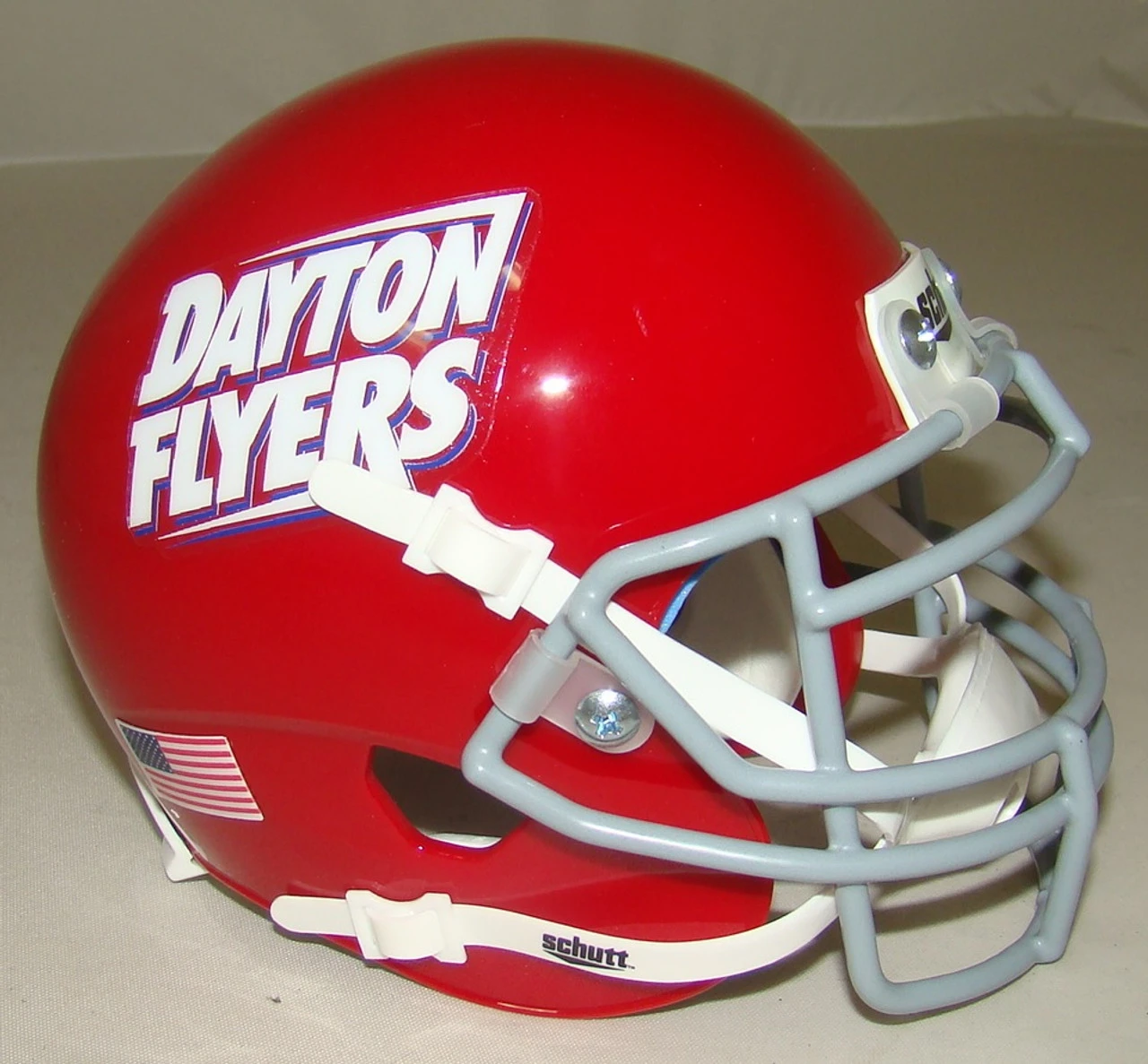 Dayton Flyers Mini Authentic Helmet Schutt. Mini football helmets are finely crafted versions of the actual competition helmets. Mini football helmet with great graphics and team decals. Realistic metal face guard and complete interior pad set. Size: 5 ½” (L), 4 ½” (W), 4 ¾” (H) (NOT FOR WEARING)
