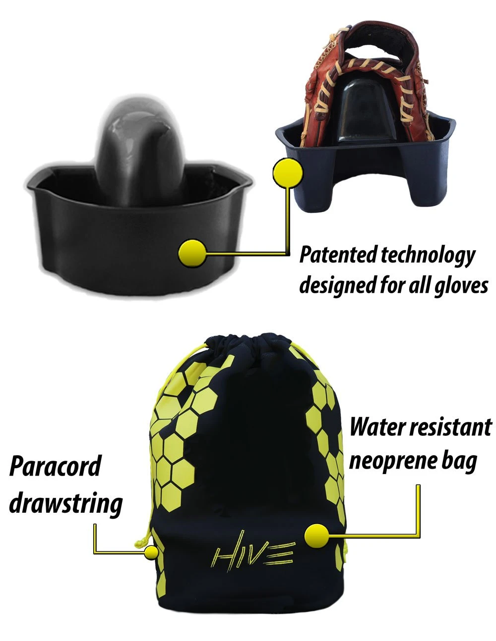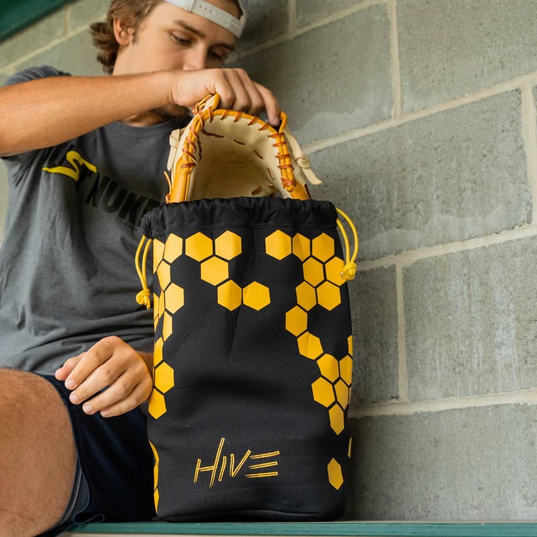 Hive is a top of the line, weather-resistant, neoprene glove bag with a patented plastic shell secured inside. The universal shell is specifically designed to protect the player’s desired shape and maintain the pocket. Any glove will fit directly in. Durable neoprene bag resists everyday wear and tear to extend the life of your Hive and most importantly, your glove. Pull the knots on the paracord double drawstring closed and your glove will come out exactly how you put it in. Those expensive gloves are worth being properly cared for, The Hive makes it easy!