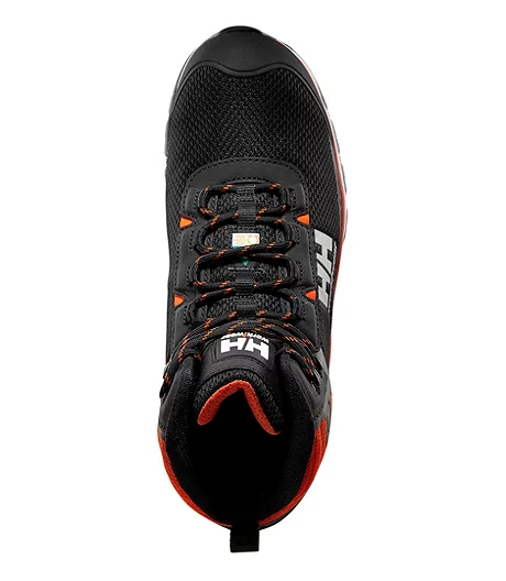 A mid cut safety hiker from Helly Hansen, this design features aluminum toes and composite plates along with resistance to electric shock and puncture. These men’s safety hikers feature tough uppers made of abrasion-resistant mesh with welded TPU overlays and rubber toe bumpers. Outsoles are designed to improve traction in wet conditions. The work shoes meet CSA Grade 1 safety standards.