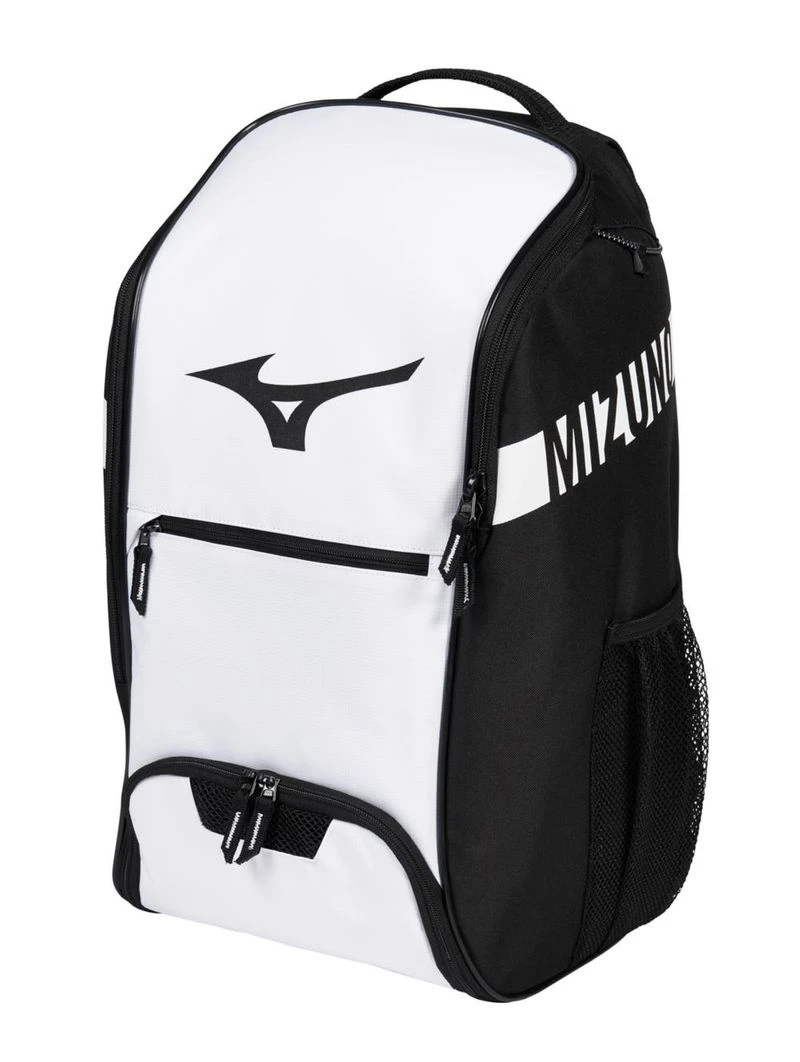 - Attached Mesh Bag with Mizuno Branded Carabiner: Easily store a volleyball or batting helmet outside of bag to maximize storage space