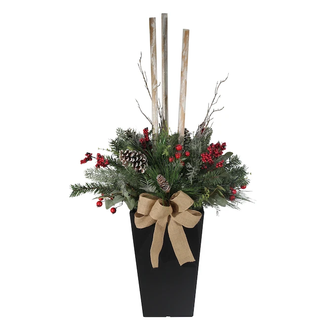 La fausse plante en pot présente un arrangement de fausses baies, de branches mélangées, de brindilles et de pommes de pin dans un pot rectangulaire pour un look classique et haut de gamme. Les brindilles et les faux rondins de bouleau ajoutent de la hauteur au centre du pot, tandis que le noeud en toile de jute se trouve au centre avant. 25 lumières DEL blanc chaud. Ce pot de 50 pouces de haut est idéal comme décoration d’appoint ou sur le porche d’entrée. La décoration nécessite 3 piles AA (non incluses) et comprend des options de marche/arrêt/temporisateur (6 heures Allumé et 18 heures éteint). Utilisation en intérieur et en extérieur protégé. Ajoutez une touche de verdure et de chaleur festive à votre décor avec cette pièce décorative des fêtesLa fausse plante en pot présente un arrangement de fausses baies, de branches mélangées, de brindilles et de pommes de pin à l’intérieur d’un pot rectangulaire pour un style classique et haut de gammeDes brindilles et de fausses bûches de bouleau ajoutent de la hauteur au centre du pot avec une boucle en toile de jute au centre avant, ainsi que 25 lumières DEL blanc chaud qui illuminent la verdure avec une lueur constanteMesurant 50 pouces de hauteur, il est idéal comme décoration d’appoint pour le foyer de votre salon, une table d’appoint ou sur le porche d’entrée pour créer un espace accueillantAchetez-en plusieurs pour encadrer votre foyer ou votre porcheLa décoration de porche ne nécessite aucun entretien et reste fraîche année après annéeLa décoration de la véranda nécessite 3 piles AA (non incluses) et comprend des options de marche/arrêt/minuterie (6 heures de marche/18 heures d’arrêt)Utilisation à l’intérieur et à l’extérieur sous abri