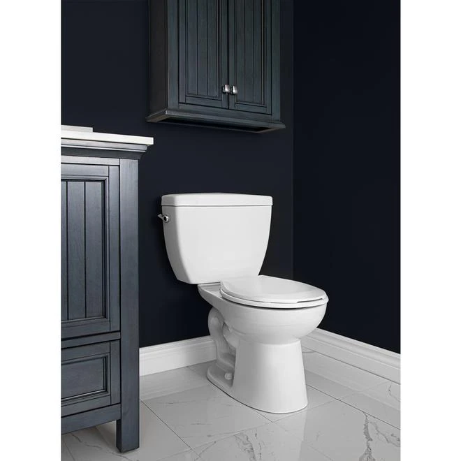 Cette toilette 2 pièces Minuet de Project Source a un bol arrondi de hauteur standard et un levier de chasse chromé situé sur le côté du réservoir. Elle ne consomme que 6 litres d’eau par chasse et a une capacité d’évacuation de 1000 g. Elle possède une plomberie brute de 10 po et est faite de porcelaine vitrifiée durable qui conservera sa belle apparence pour plusieurs années à venir. L’ensemble comprend tout ce dont vous aurez besoin pour l’installer : siège, anneau de cire et boulons. Ce modèle est couvert par une garantie limitée de 5 ans. Cuvette ronde et toilettes à hauteur normaleFaible consommation : 6,0 LPC et canalisation de 10 poLevier de réservoir chroméSiège de toilette, anneau de cire et boulons de plancher inclus