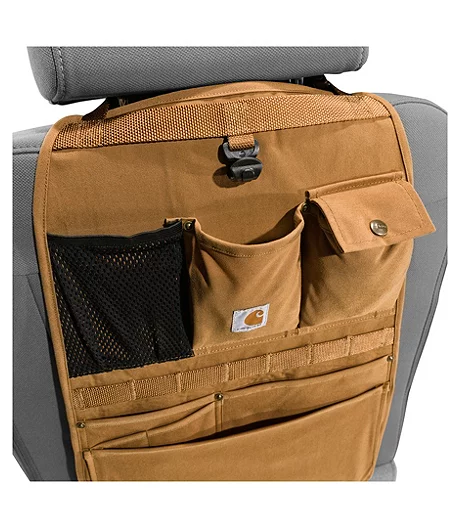 Ideal for backseat riders, this Carhartt seat-back organizer offers plenty of pockets for storing books, magazines and craft items. It’s easy to install securely and fits most auto seats.
