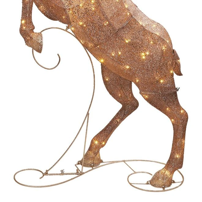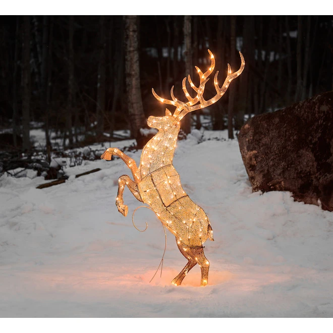 Apportez le bonheur des fêtes à tout votre voisinage avec cette sculpture géante d’élan. Unique et immense, elle attirera certainement le regard des visiteurs, de vos invités et du voisinage avec ses 160 lumières DEL scintillantes offrant un éclairage blanc chaud. Disposez cet élan sur votre pelouse et laissez la belle scène vous mettre dans l’esprit des fêtes. Assemblage rapide et facile pour une décoration sans tracas. 160 lumières DEL scintillantes blanc chaudAssemblage rapide et facilePeut être utilisé à l’intérieur ou à l’extérieurComprend des ampoules de rechangeComprend des piquets métalliques pour un ancrage au solConstruction démontable pour un rangement pratiqueDimensions : 7,25 pi h. x 4,25 pi l.Une prise électrique est nécessaire pour le branchement ; un cordon d’alimentation de 5 pieds est compris pour une utilisation facile