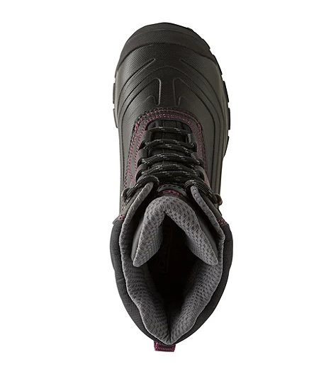 These Dakota women’s 8905 safety boots are equipped with a pair of our signature technologies for protection on outdoor worksites. Hyper-Dri®HD3 makes them waterproof and breathable and lightweight T-MAX® insulation offers warmth and comfort. These tough boots have flat-molded EVA shells and full grain leather shafts. Tarantula IceFX rubber outsoles with Green Diamond® technology help to maximize slip resistance on ice. CSA-compliant safety features include composite toes and plates and puncture resistance.